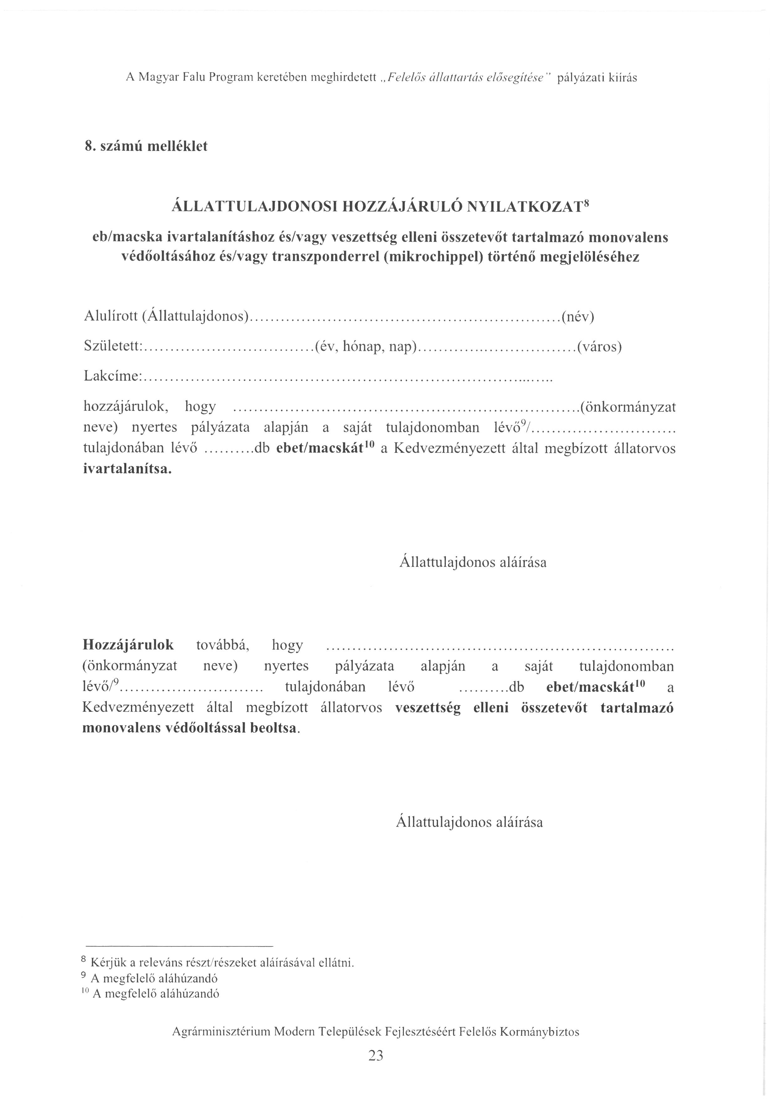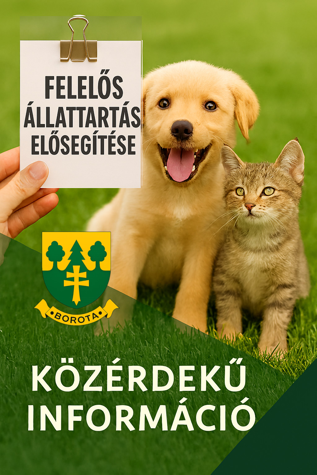 A Magyar Falu Program keretében megjelent a „Felelős állattartás elősegítése” pályázati kiírás, melyre Borota Községi Önkormányzat pályázat benyújtását tervezi. A pályázat keretében a település lakóinak tulajdonában lévő ebek és macskák állatorvos által elvégzett ivartalanítása, veszettség elleni védőoltása valamint mikrochippel történő megjelölése támogatott.