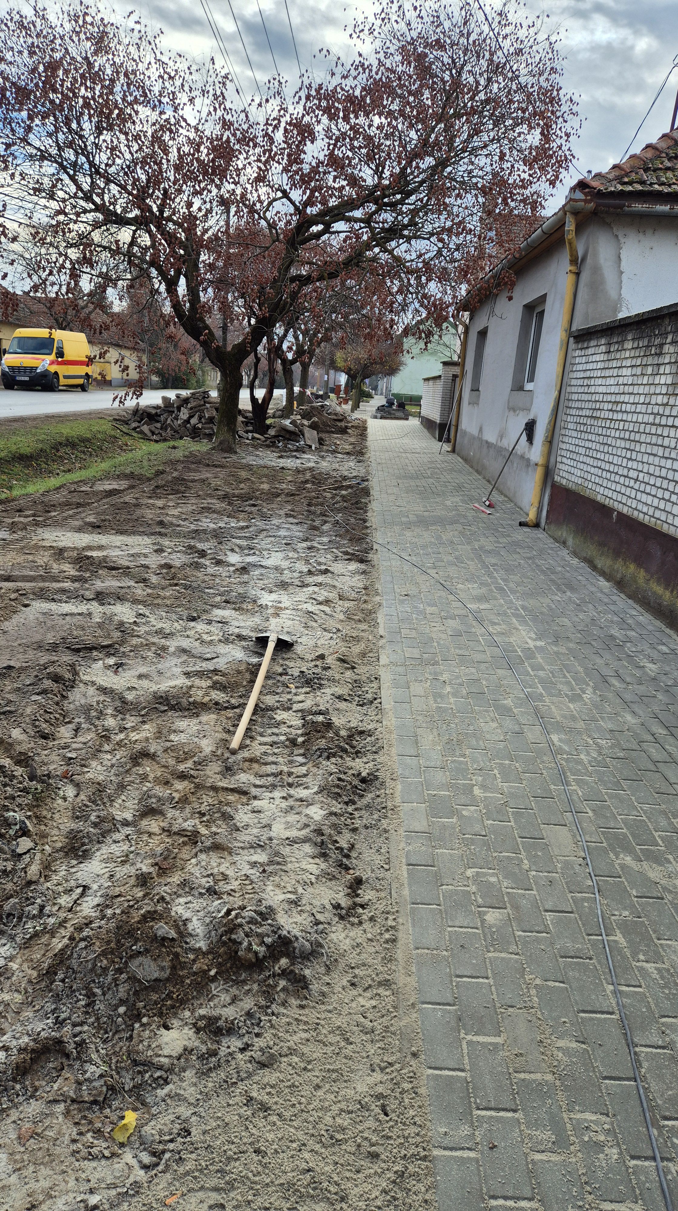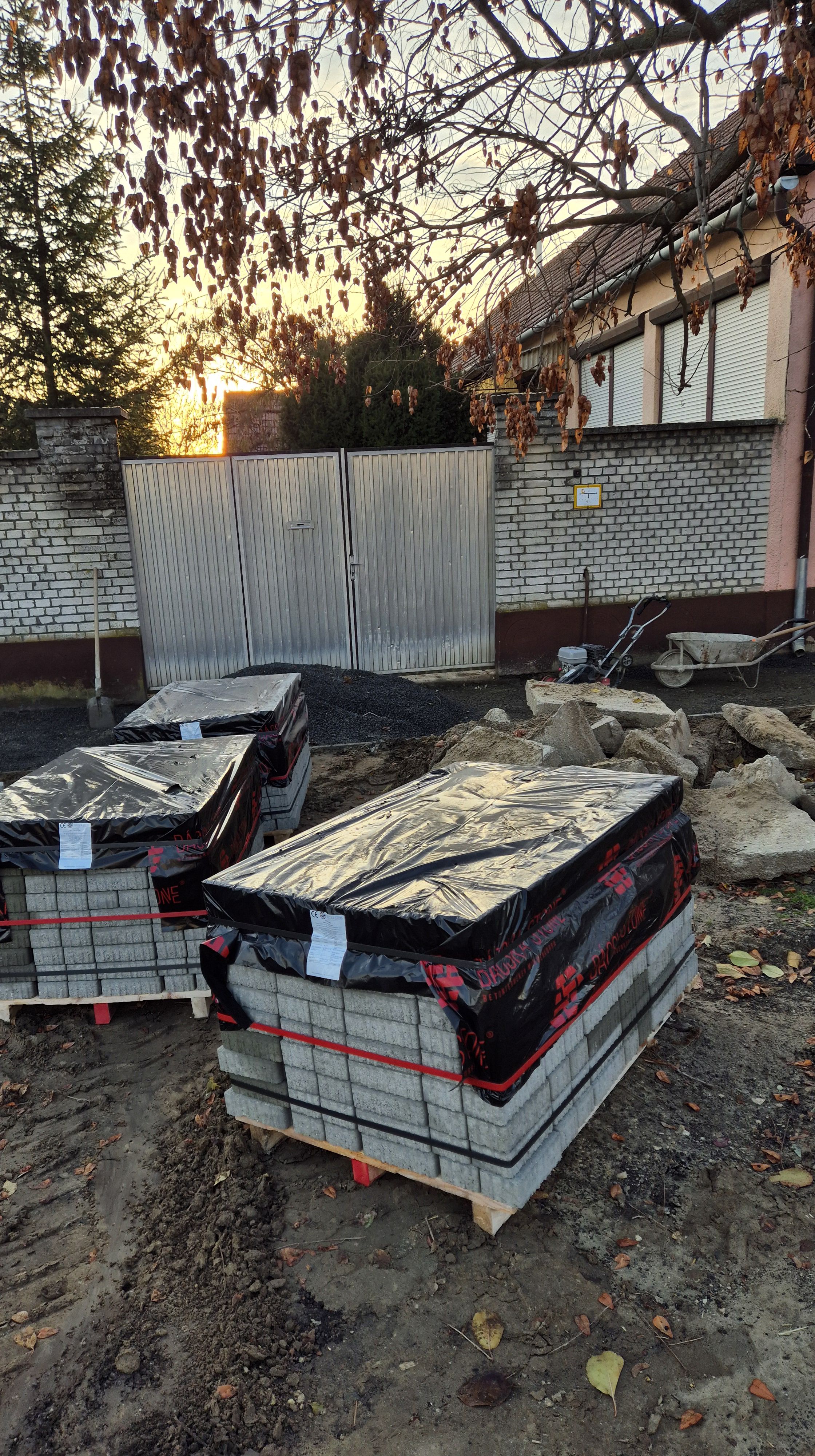 - Térburkolathoz fagyálló, teherhordó alap készítése, 20 cm vastagságban, nyers homokos kavics, NHK 0/125 QT, kapubejáróknál 0-50 zúzottkő 30 cm vastagságban.