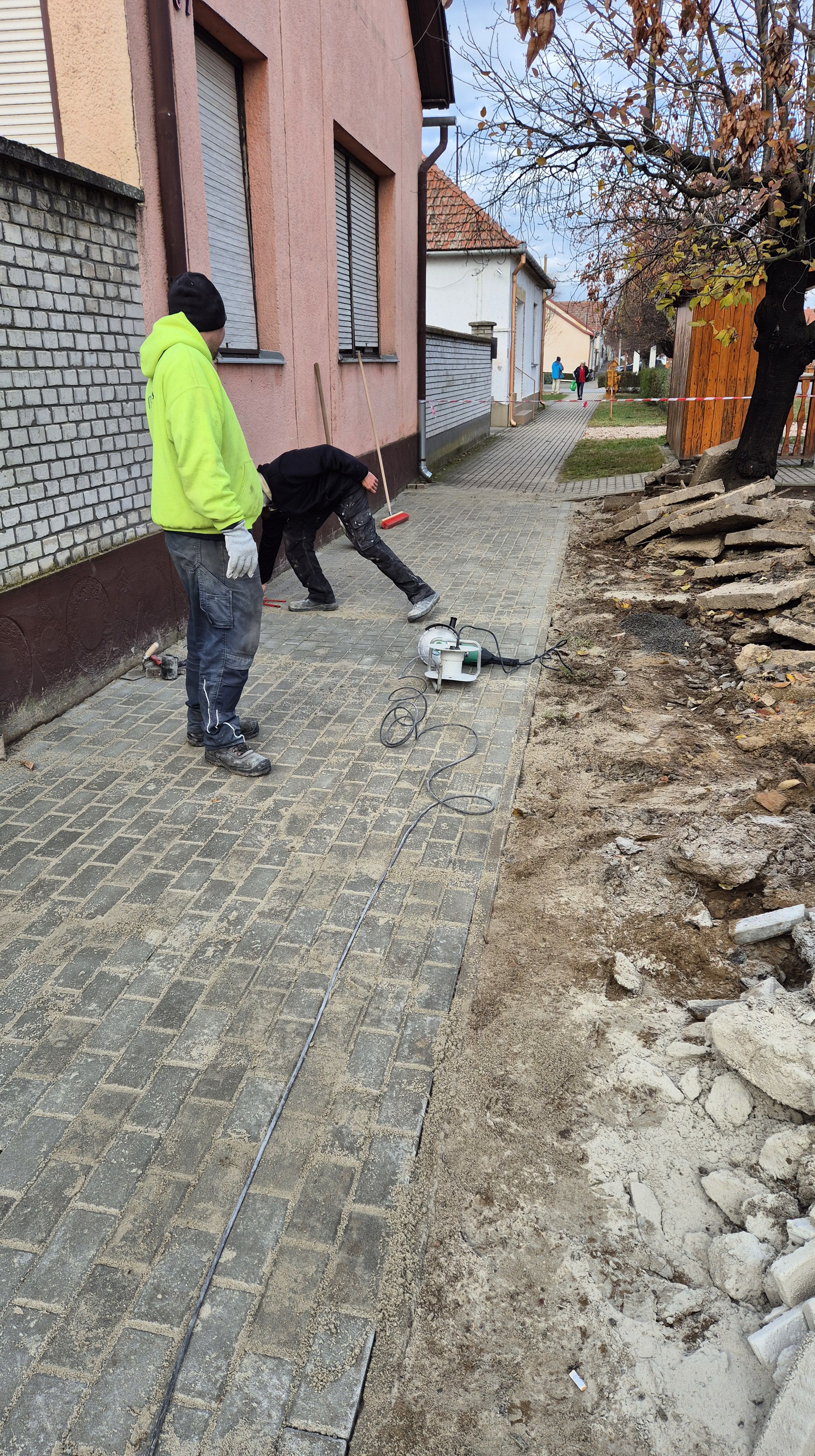 - Térburkolat készítése rendszerkövekből 6 cm-es vastagsággal, 20x10x6 cm-es méretben