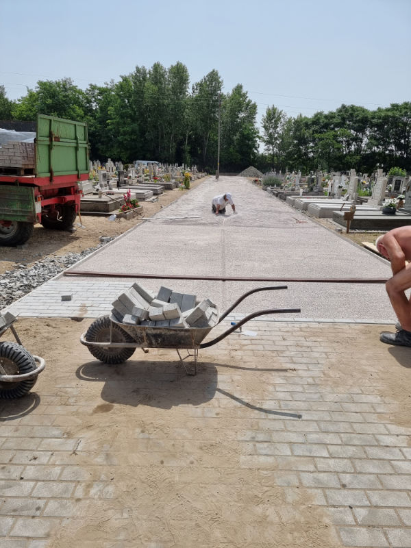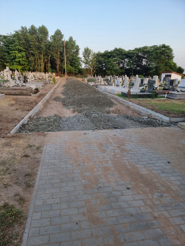 A kivitelezési munkálatokat az Á.CS.F.-Bau Kft. végezte. Velük a szerződést 2021.05.25.-én kötöttük meg. A munkálatokat 2021.07.26 -án fejezték be. A fejlesztés által a temetőbe való bejutás és a sírokhoz való eljutás az idősebbek, mozgásukban korlátozott lakosoknak, hozzátartozóknak is elérhetőbbé vált, mindamellett a fejlesztés esztétikailag is javítja a település képének arculatát. A fejlesztés megvalósításával a temetőbe látogatók és az elhunytak hozzátartozói egy humánusabb szemléletű temetőbe, kegyeleti helyre tudnak ellátogatni. A projekt része volt még a kapcsolódó általános költségek elszámolása is. Külsős szolgáltató bevonásával került beadásra a támogatási kérelem, majd koordinálásra és elszámolásra a projekt megvalósulása, illetve a kötelező tájékoztatási és nyilvánossági elemek is elhelyezésre kerültek.
