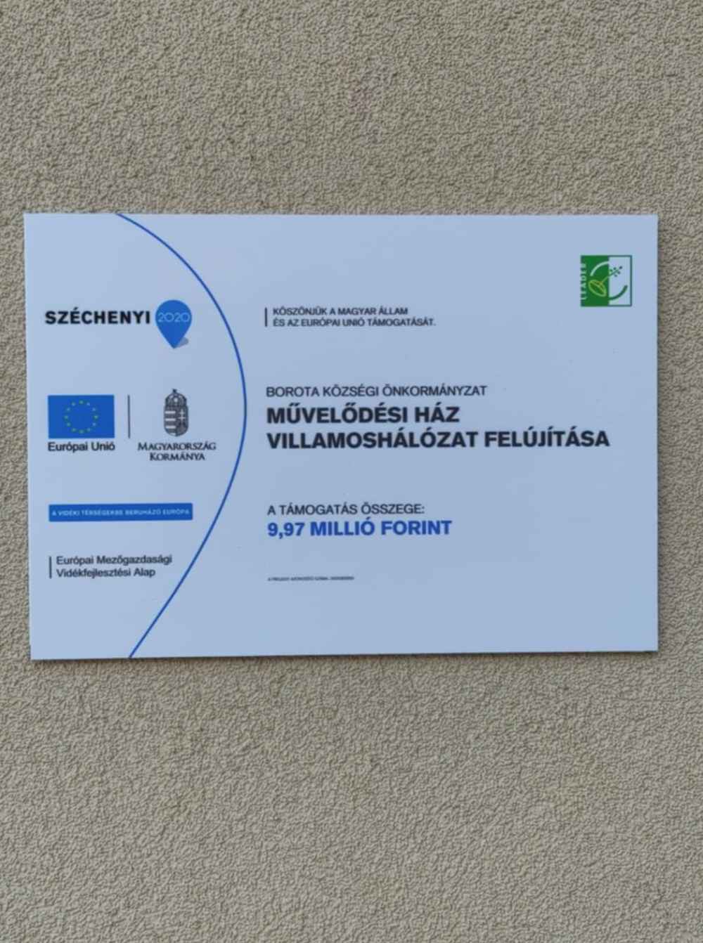 Az épület a Szent István utcában helyezkedik el a község központjában. Az épület az 1980-as években épült hagyományos szerkezetek alkalmazásával, cserép fedéssel. A község Szent István utca 31. szám alatti ingatlan Borota község központjában, a község fő utcájában helyezkedik el, utcafrontos beépítéssel részben kétszintes, U alakú épületben. A telek és az épület víz-, elektromos kapcsolatai adottak, közművesített. A fejlesztés során az épület elektromos felújítása, valamint az elektromos felújítási munkákat követő minimális vakolat helyre állítás és javítási munkák megvalósultak. Az új fejlesztési megoldások megfelelnek a vonatkozó előírásoknak és szabványokban foglalt követelményeknek, az alkalmazott és beépített építőanyagok kiválasztásánál a műszaki megfelelőség és a hosszú távú gazdaságosság szempontjai voltak mérvadóak. A kivitelező Jedlik 1830 Kft. volt.